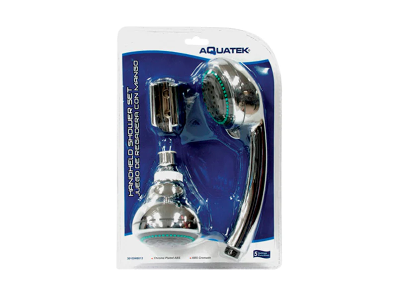 Juego de Regaderas Doble Cromadas con Mango de 5 Funciones Aquatek